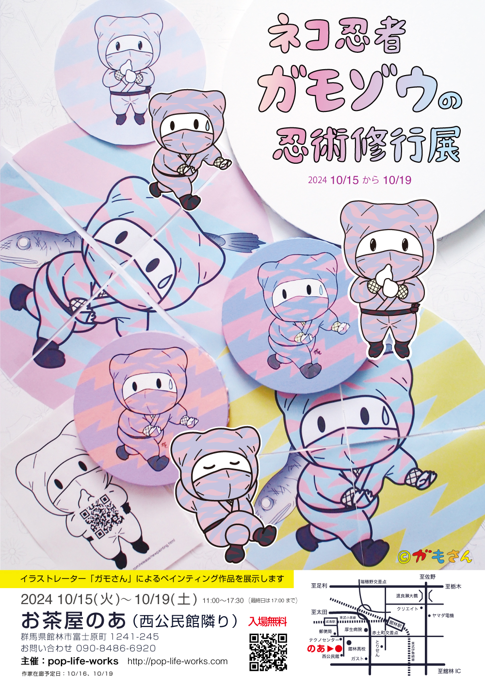 群馬県館林市お茶屋のあにて『ネコ忍者ガモゾウの忍術修行展』開催予定!