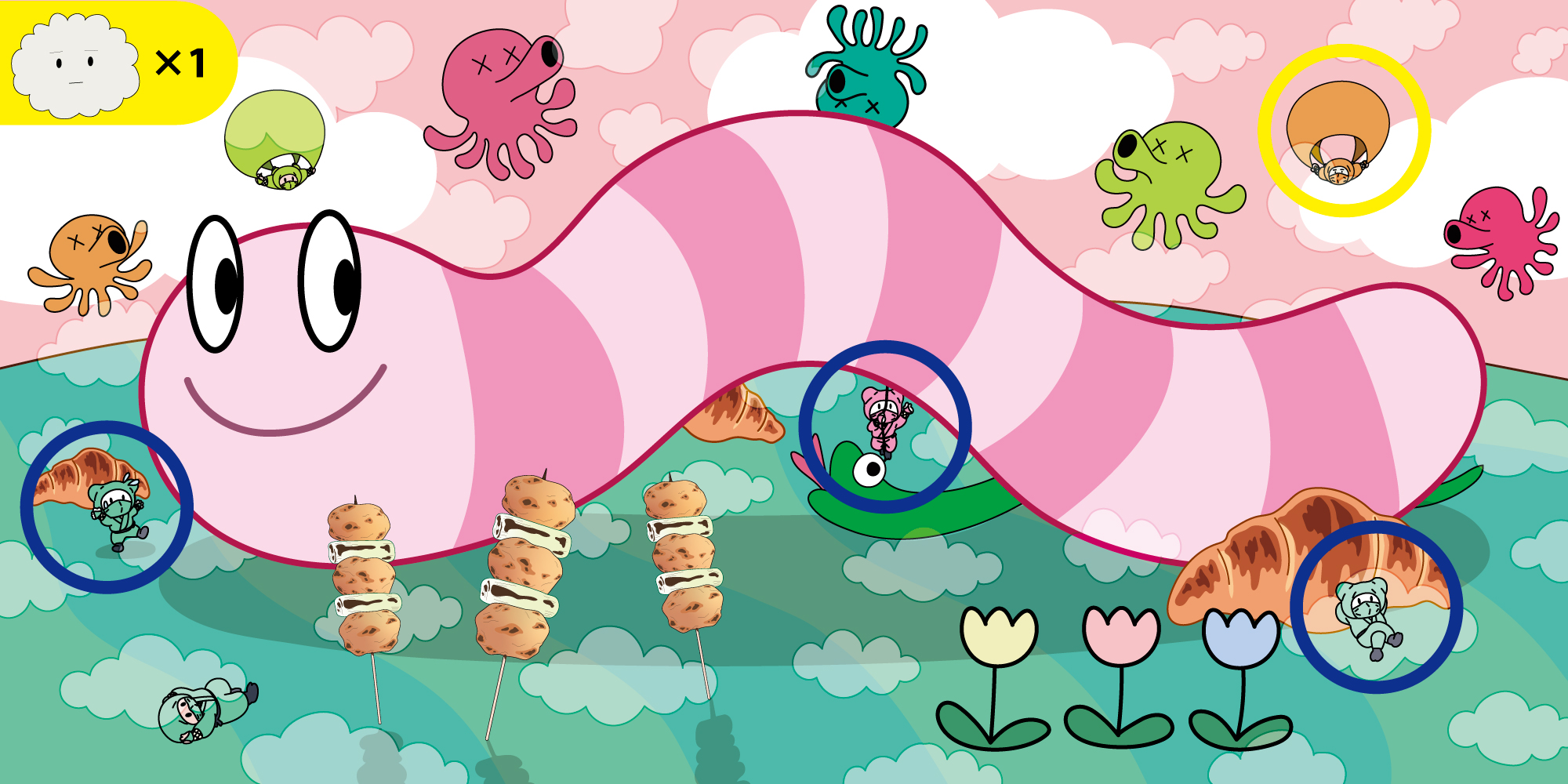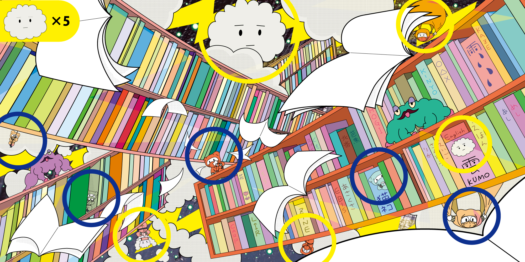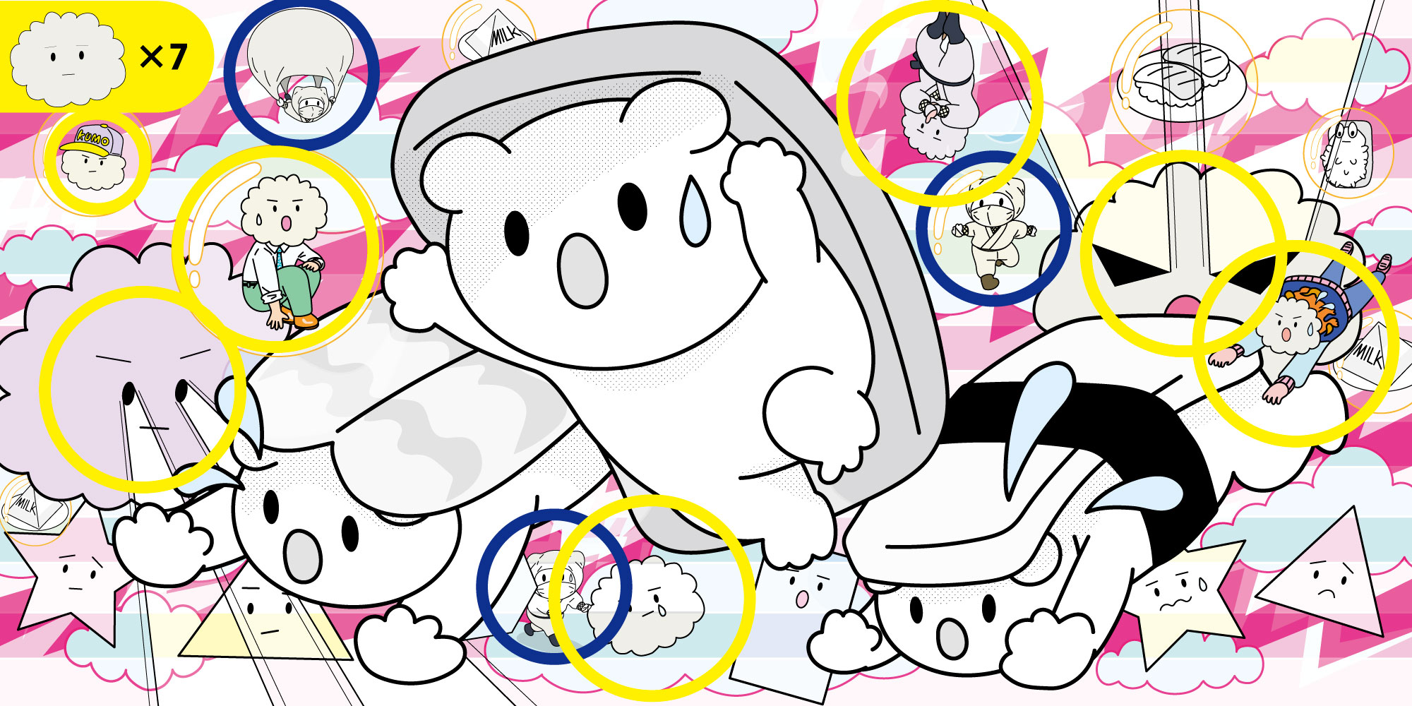 イラストの中に左上のアイコンの雲おじさん(ミスタークラウド)が5人いますので、よかったら探してみてください!雲忍者の出す煙にまどわされないように!!